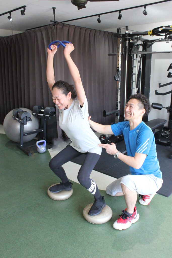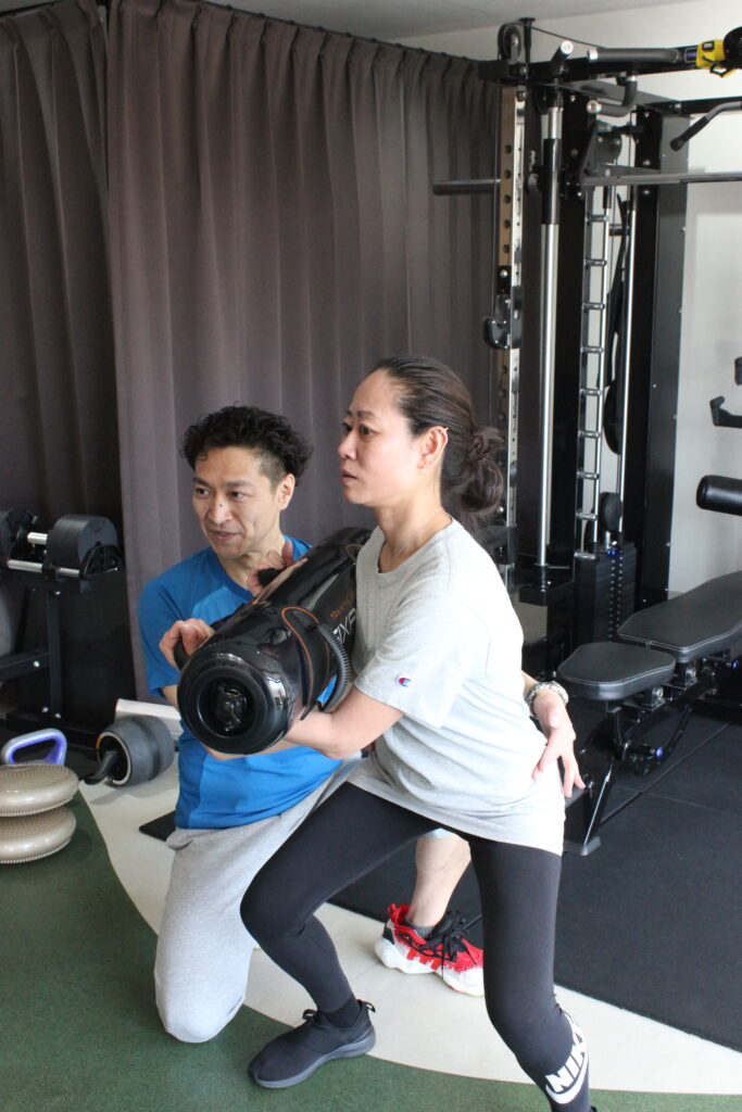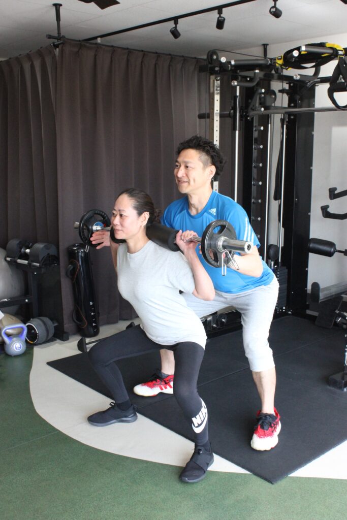 トレーニング中に力強い声で励ましてくれるせいか、明るく前向きな気持ちを維持できます。隣や後ろに立ち呼吸を合わせて一緒に動いてくれるので、1人でやらされているような孤独感がないし、ウェイトが重くなってふらつくと「必ず支えるから安心して頑張れ」といつも言われる。こういう細かい支えがあるから、いつもそこからもうひと頑張りができています。トレーニングって、筋肉よりも心の強さの問題なんだなーと実感しています!